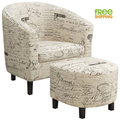 Sturdy Accent Chair Ottoman Set Off White French Script High Quality Vintage New Ebay